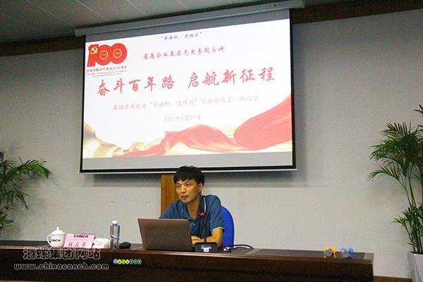8月27日,省國(guó)資委黨委“舉旗幟·送理論”基層黨史專(zhuān)題宣講報(bào)告會(huì)在海螺集團(tuán)下屬銅陵海螺舉行,省國(guó)資委黨委“舉旗幟·送理論”基層黨史專(zhuān)題宣講團(tuán)成員、銅陵有色集團(tuán)張家港聯(lián)合銅業(yè)有限公司黨委委員、紀(jì)委書(shū)記錢(qián)慶華作題為《奮斗百年路 啟航新征程》的專(zhuān)題宣講報(bào)告。銅陵海螺黨委副書(shū)記、總經(jīng)理劉慶新主持報(bào)告會(huì)。