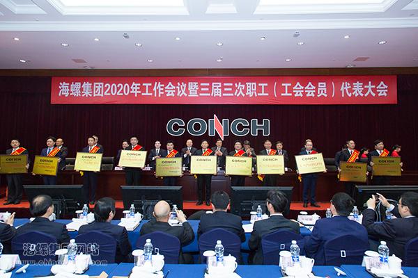 只爭朝夕加油干,不負(fù)韶華再向前。2020年元月10日,海螺集團(tuán)2020年工作會議暨三屆三次職工(工會會員)代表大會在總部召開。來自集團(tuán)部室及直屬子公司、海螺水泥股份公司、國貿(mào)集團(tuán)公司、海螺型材股份公司、海螺投資公司等各產(chǎn)業(yè)板塊的400余名職工代表、工會會員代表、工作會議代表激情滿懷、齊聚一堂,共商發(fā)展大計,推動企業(yè)高質(zhì)量發(fā)展再上新臺階。